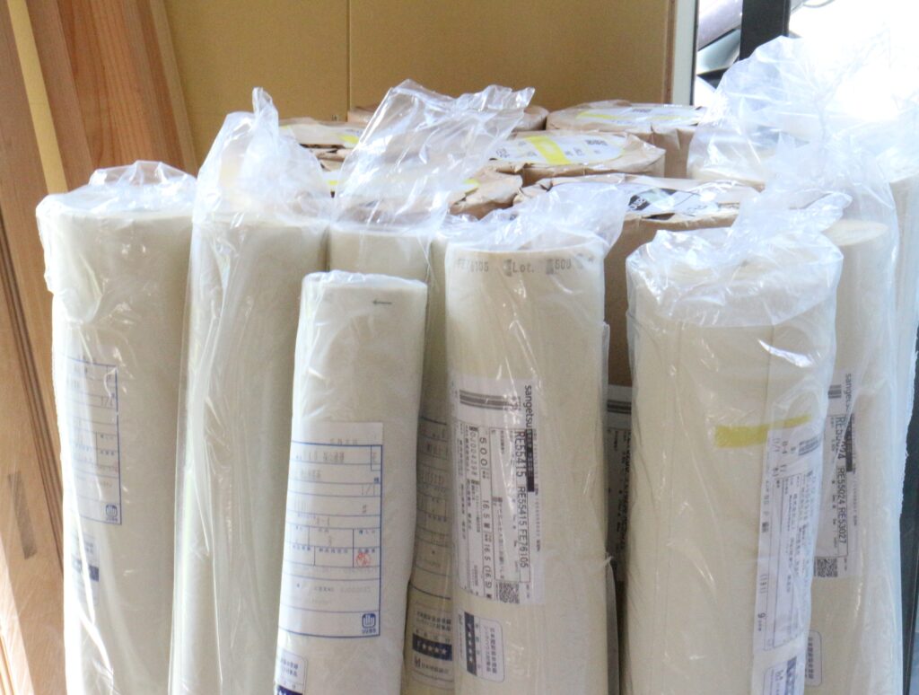 2025-07-09 現場レポート:FM邸 羽目板の美しい家 FM邸 内装工事 FM様邸は、内装工事が進んでいます。 こちらは水廻りの床の塩ビタイルの下地処理をしているところです。合板の継ぎ目はどうしても僅かな不陸ができてしまうので、パテ処理をしてその不陸を無くすようにします。 壁紙のビニルクロスもこれから貼り進めます。