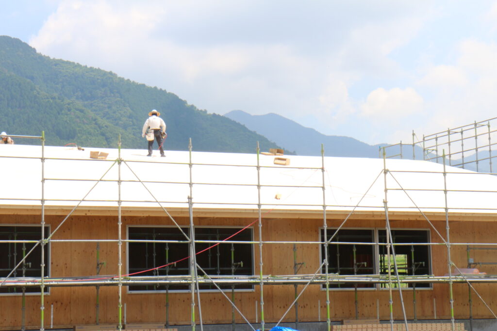 内田縫製 新工場は無事に上棟が終わり、屋根工事を進めています。