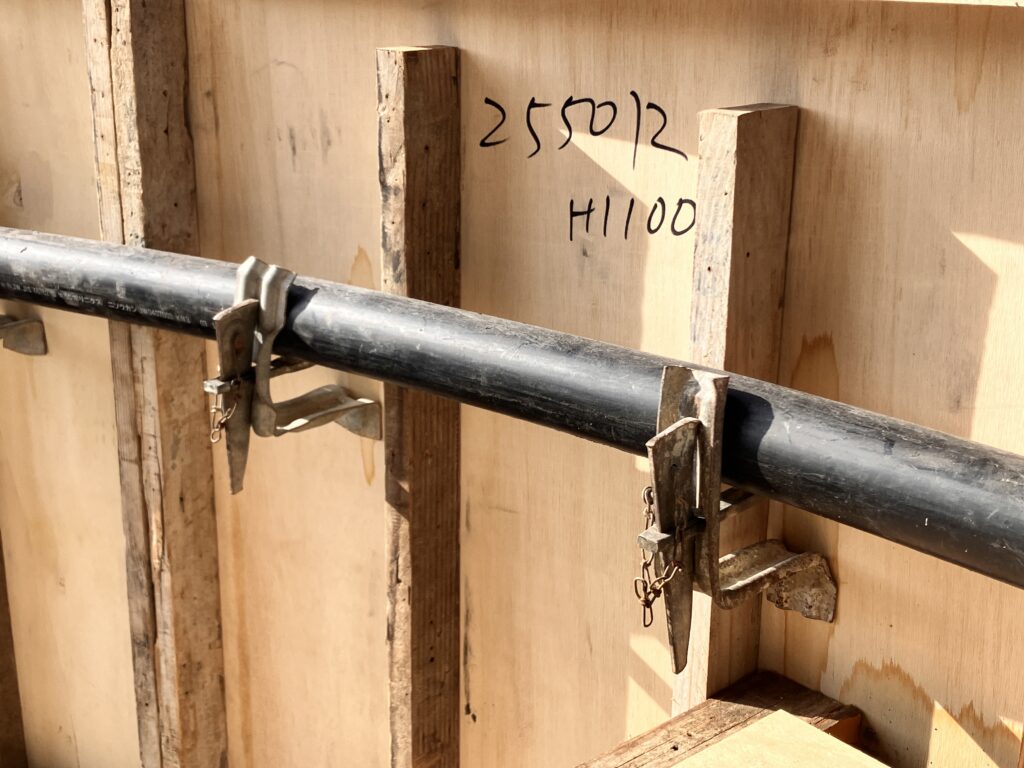 コンクリートの圧で型枠が動かないように、水道用の配管を使用して曲げ固定をしています。