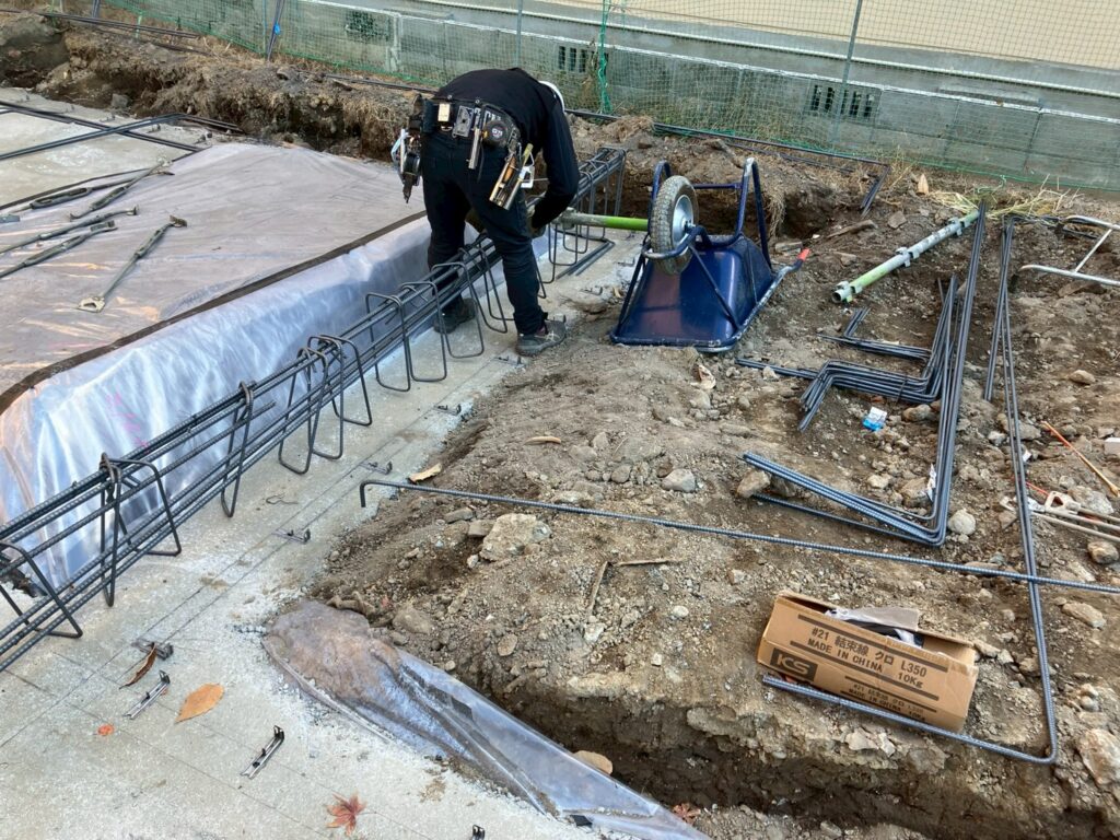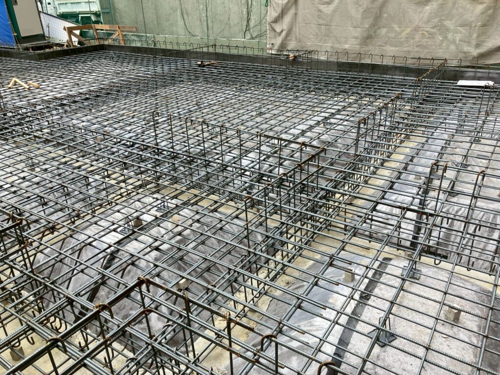 まずは基礎を支える骨組みとなる鉄筋の配筋から始まります。