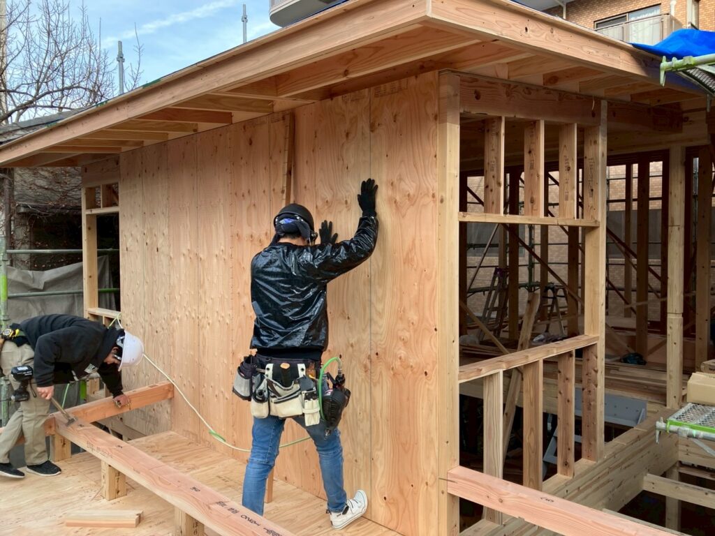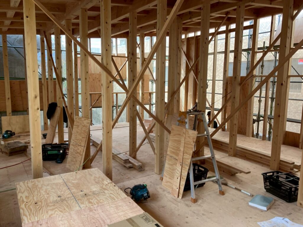 これからは大工さんによる内部の木工事・外壁工事を行います。