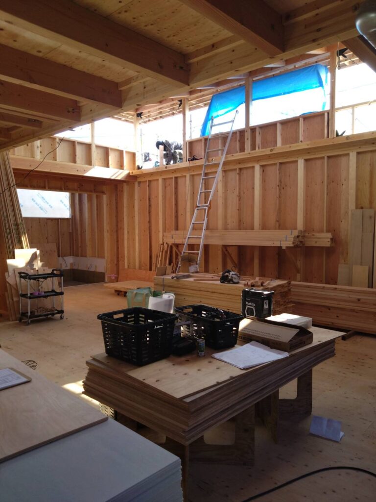 11月末に上棟を終えたIO邸では木工事が進行中です。