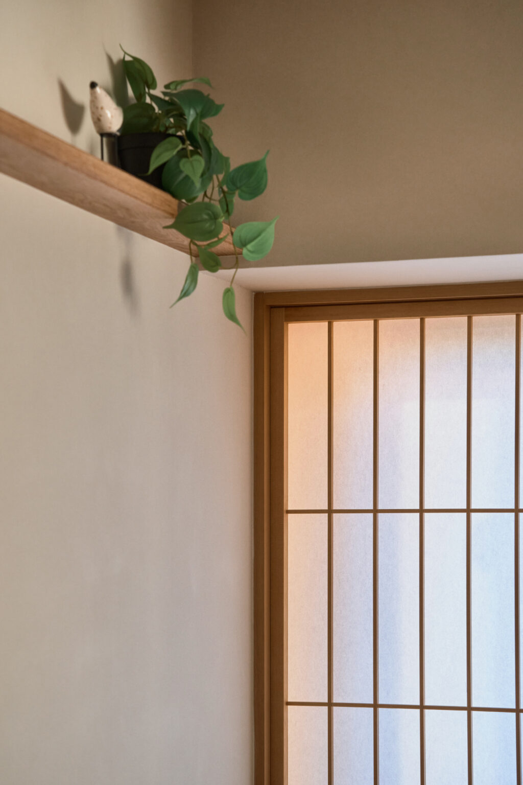 夜には障子を通して間接照明の明かりが室内を優しく照らします。