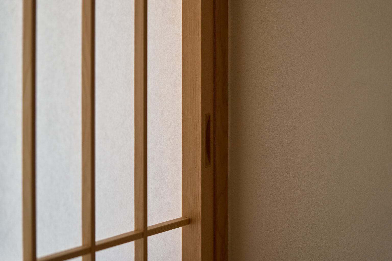 リビングに柔らかな日差しもたらす障子。緩やかに内外を区切ることで、空間の広がりを感じさせます。